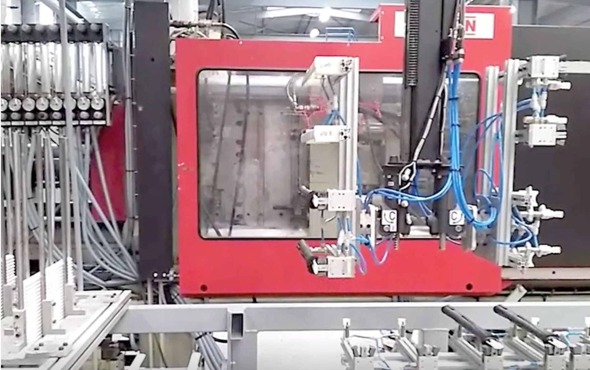 - Eine einheitliche Funktionsprüfung für jedes einzelne Bauteil: Ein Kraftsensor misst die Einpresskraft, und ein Drucksensor überprüft die Kunststoffzufuhr.