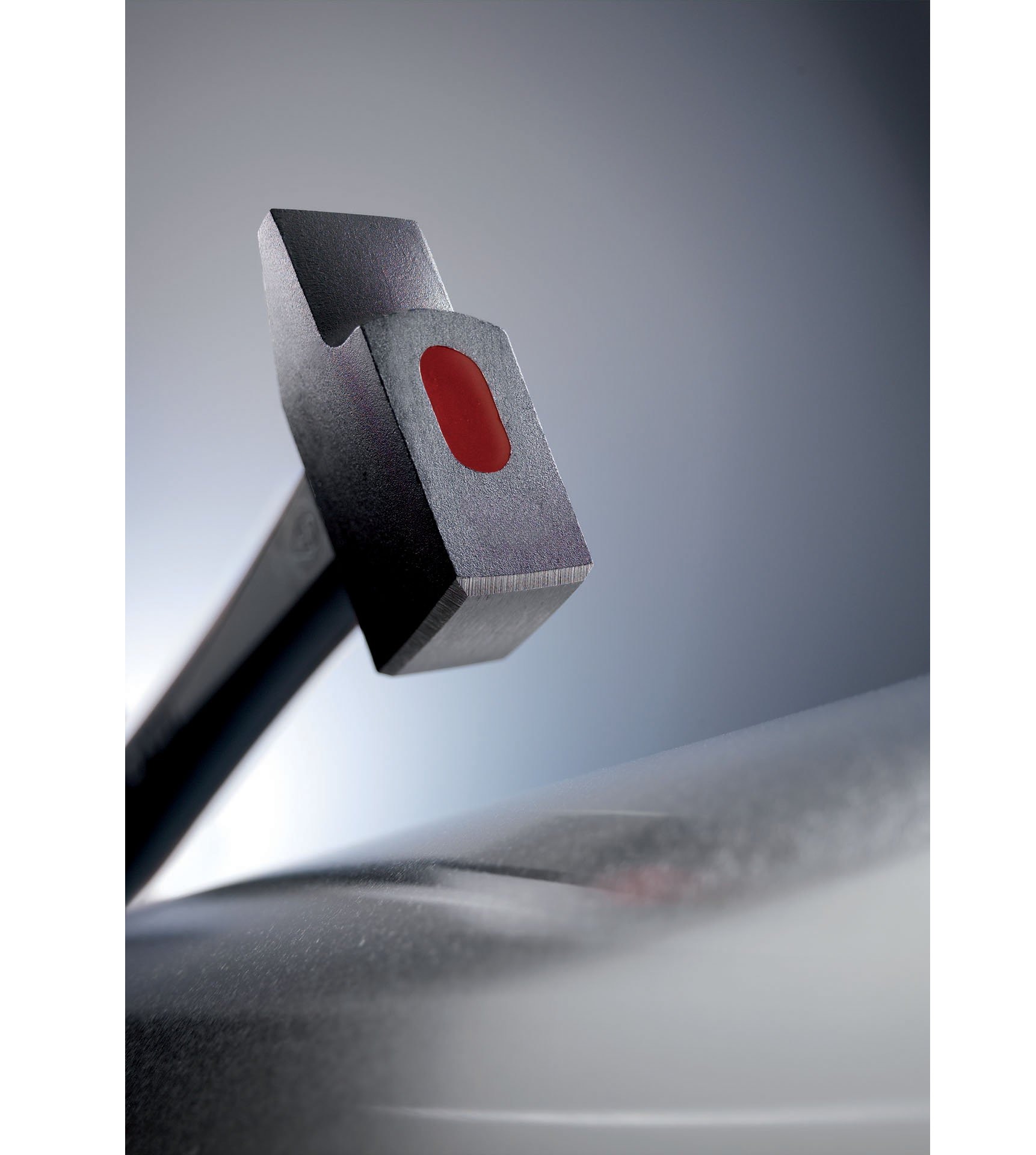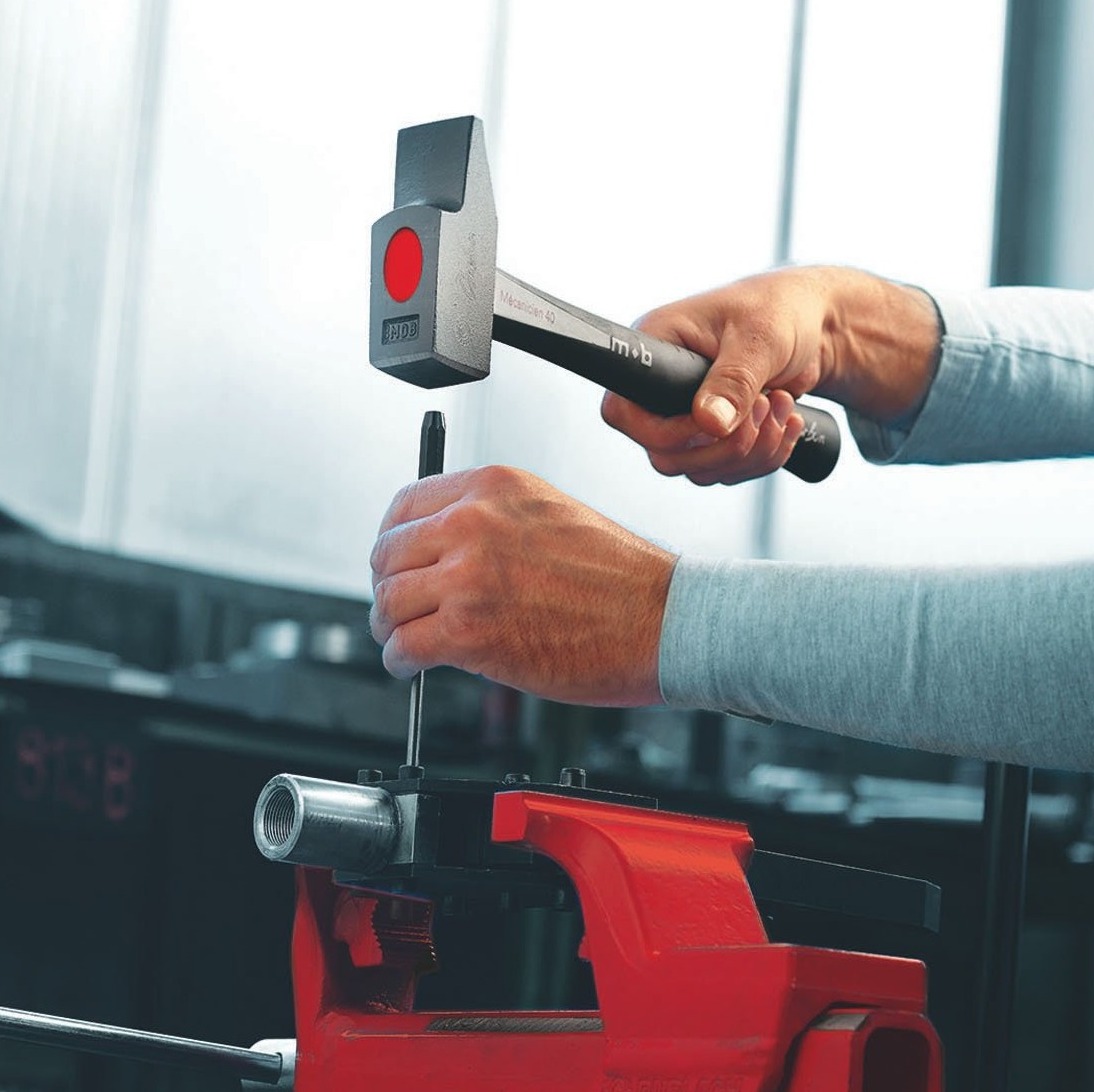 - Eine Härtetechnik, um eine perfekt kontrollierte Härte zu erzielen: höher an den Arbeitsflächen, geringer um das Auge herum, um Bruch beim Aufprall zu vermeiden. Lesen Sie unseren Artikel darüber, wie Sie den richtigen Hammerkopf auswählen.