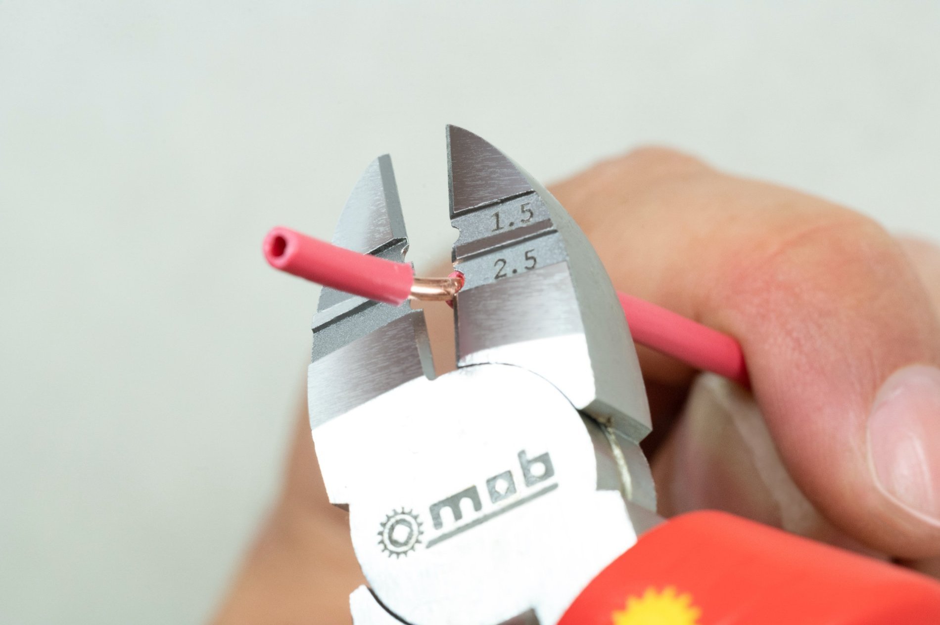 Die Leistungsfähigkeit der Diagonalschneider- und Abisolierzange? Schneiden und isolieren Sie die 1,5 mm²- und 2,5 mm²-Abschnitte, die 95 % der Anforderungen bei Hausinstallationen ausmachen.