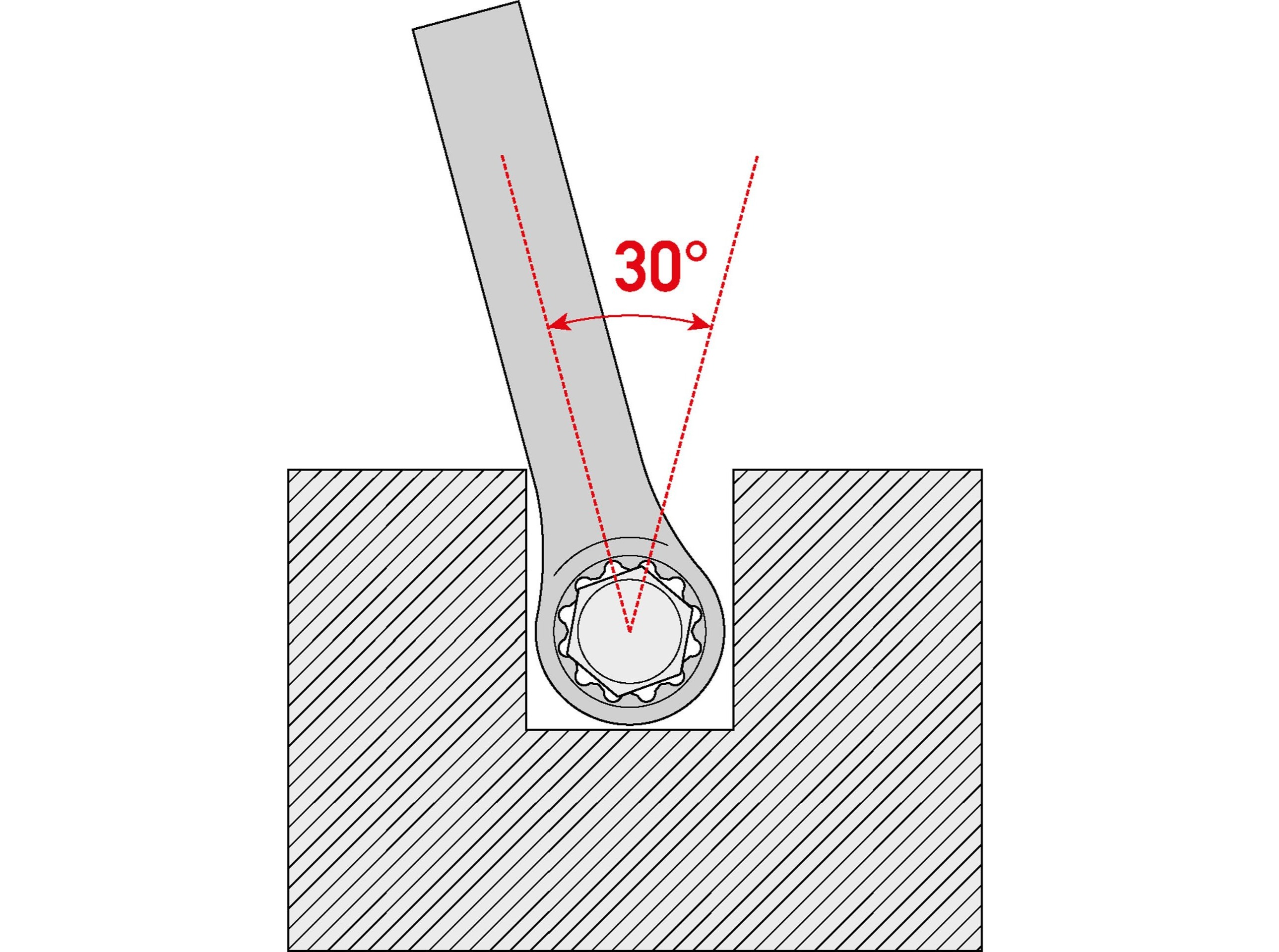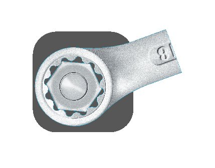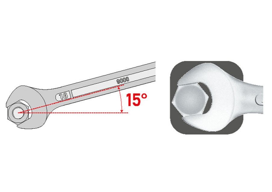 - Ein Augenkopf, der seine Kraft auf die sechs Flanken der Mutter ausübt und so für ein schnelles, sicheres Lösen sorgt, ohne die Ecken zu beschädigen.