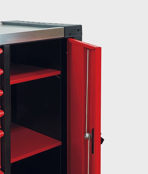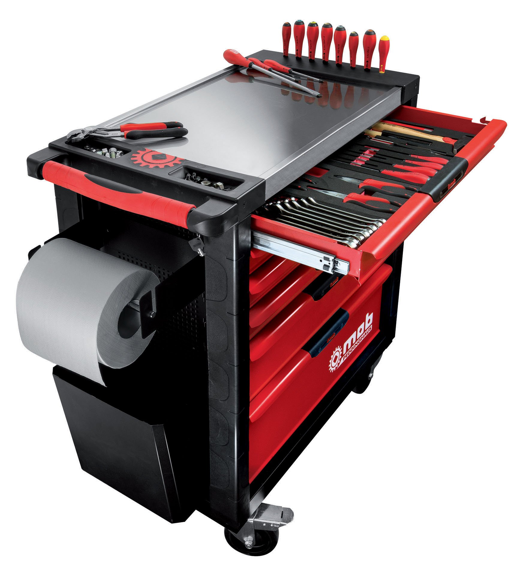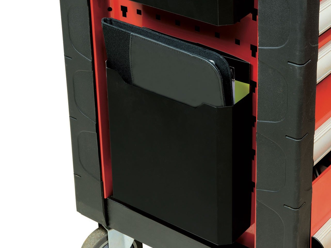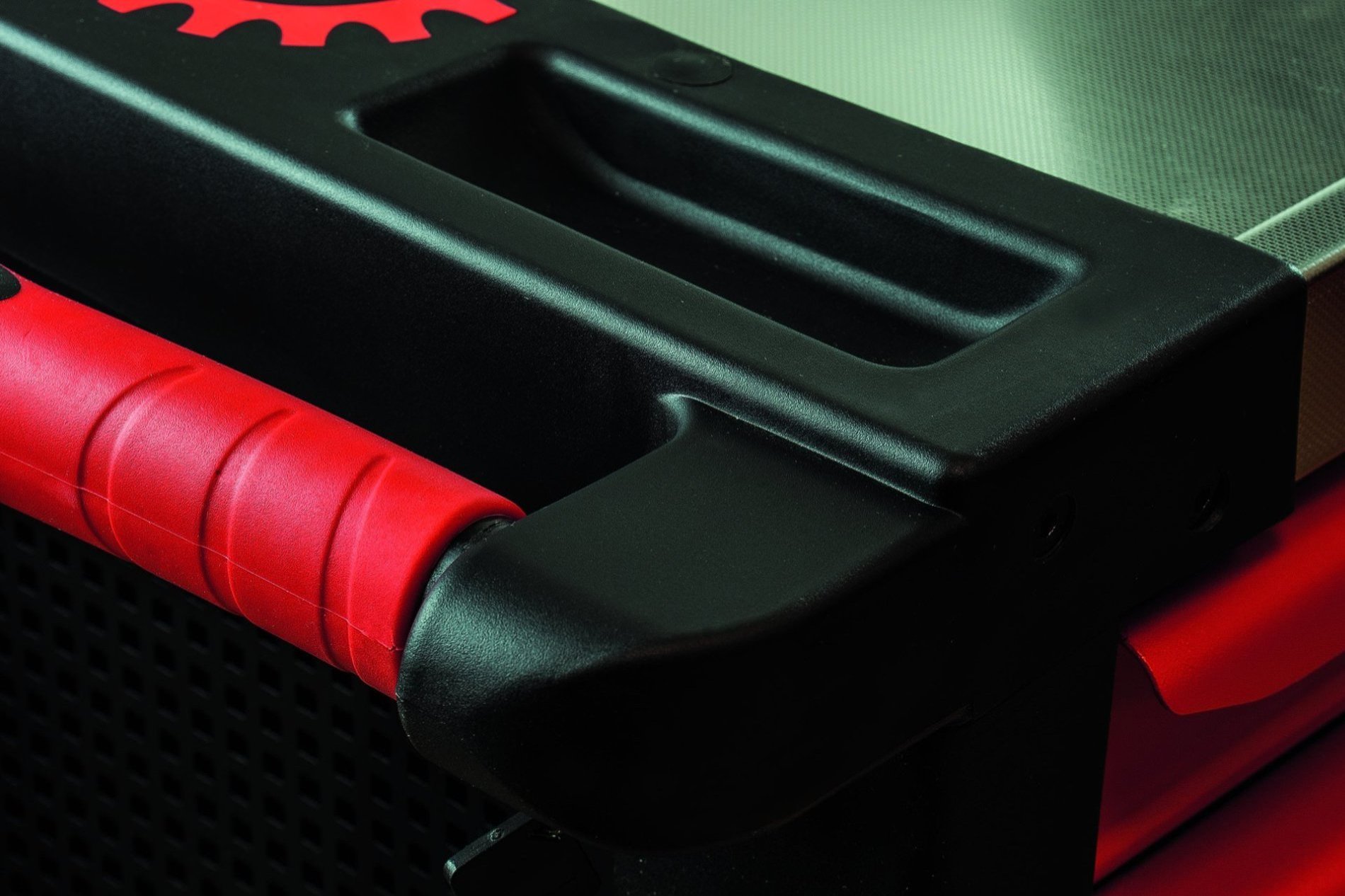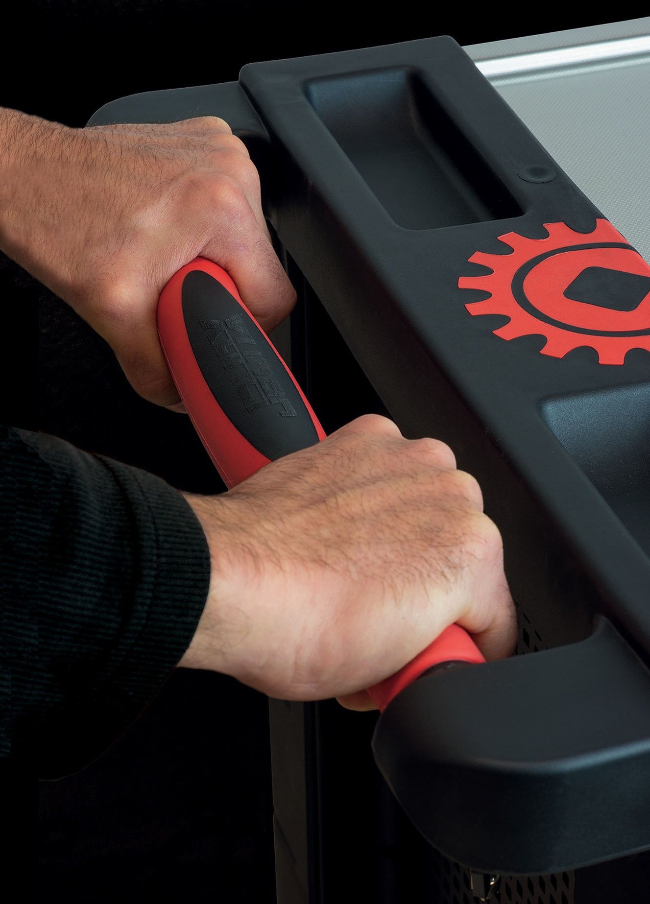 - Ein in die Ablage integrierter Zweikomponenten-Griff macht den Werkzeugwagen handlicher und praktischer.