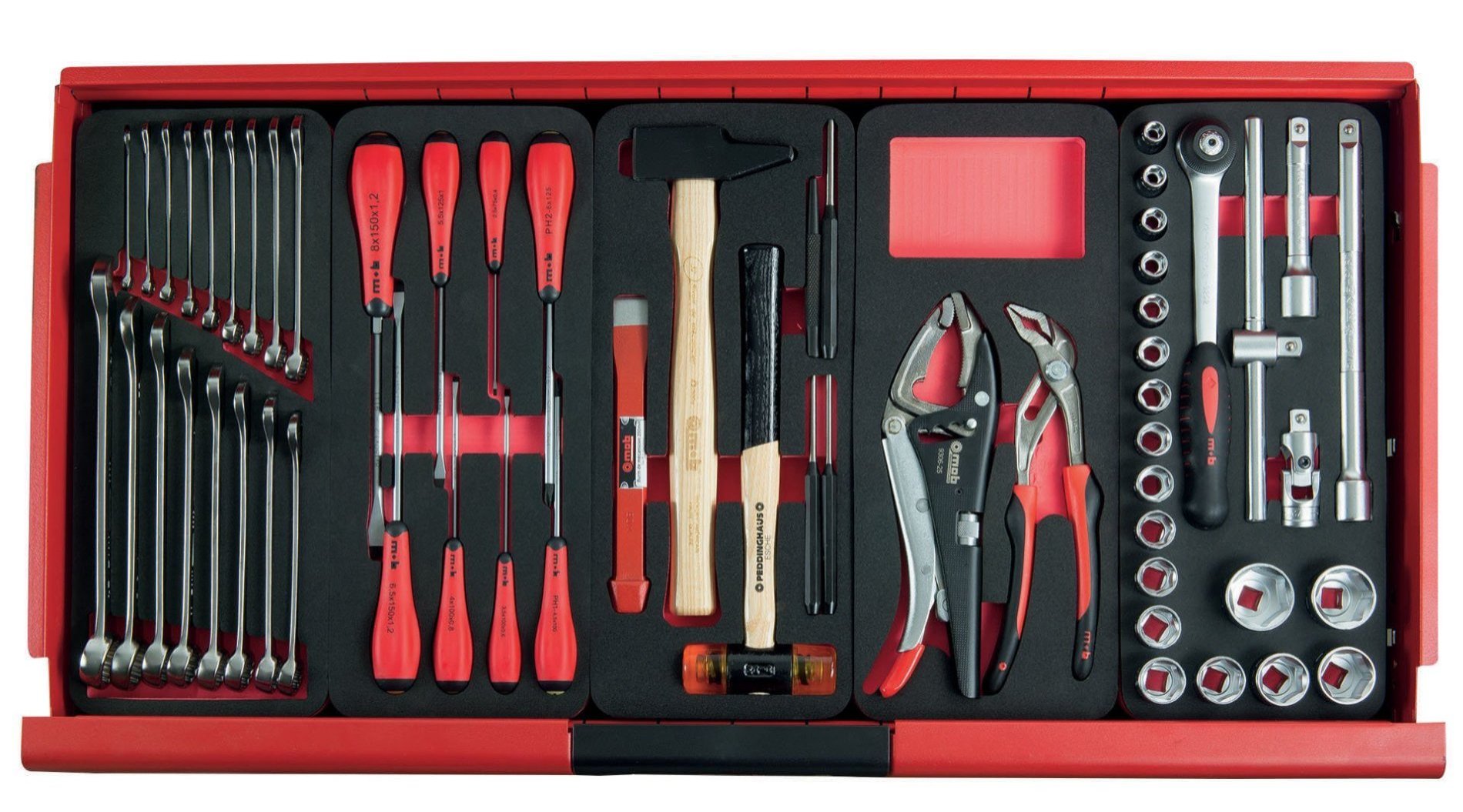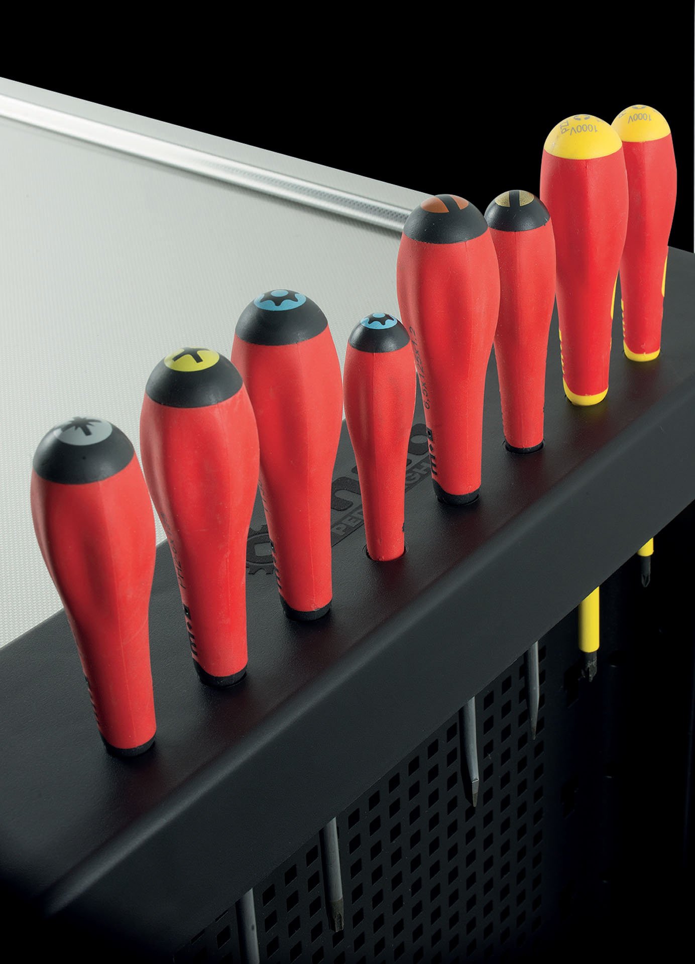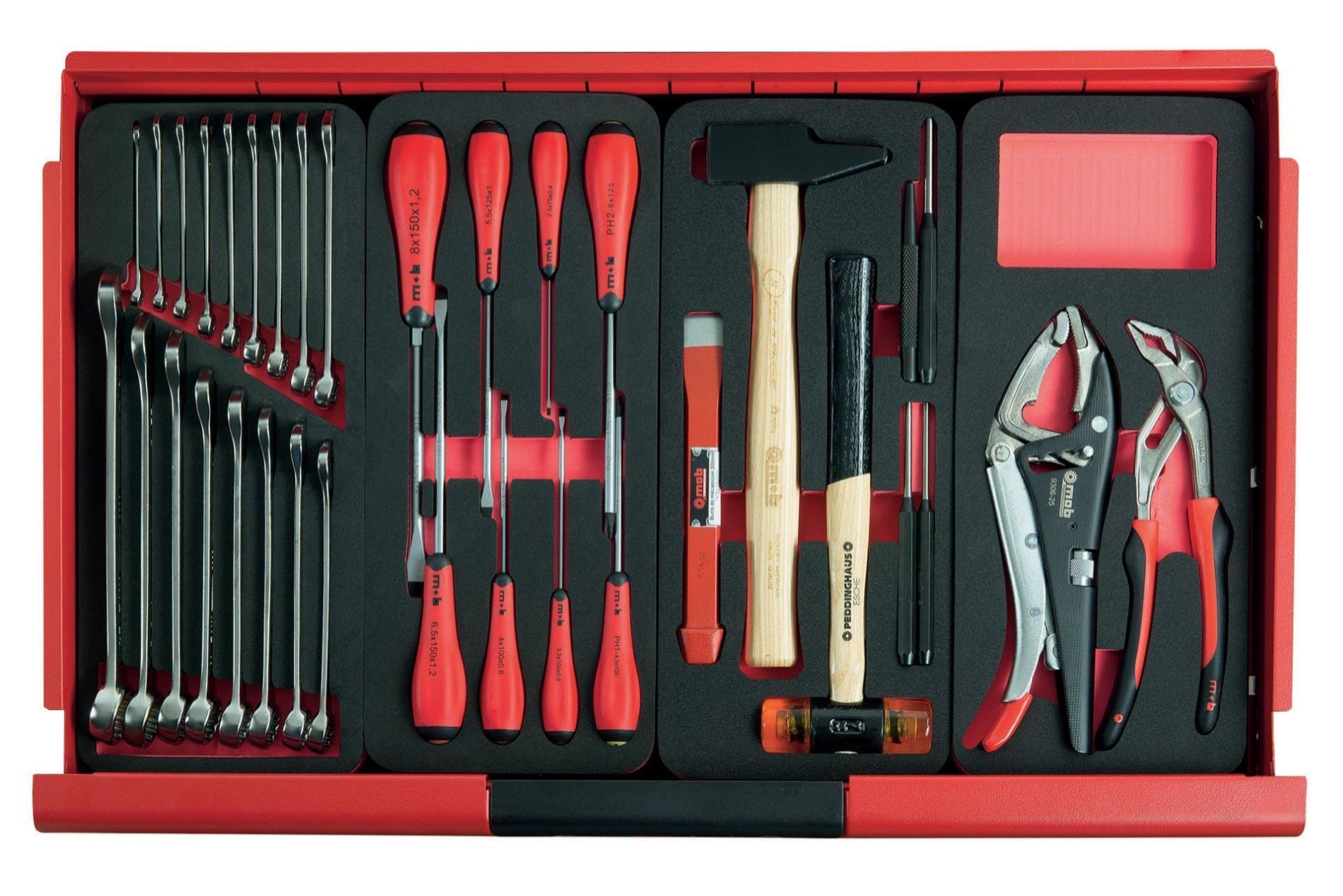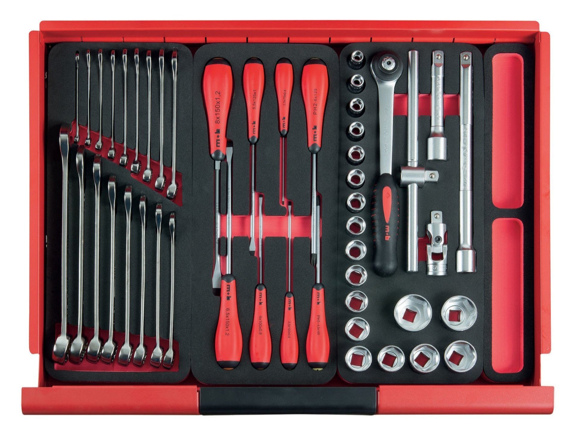 Für die Ausstattung Ihres Rollwagens stehen über 60 Modelle aus Schaumstoff oder thermogeformten Modulen zur Auswahl. In die Oberseite sind zudem Stauräume integriert: 2 Fächer für Schrauben und 8 Schlitze für Schraubendreher. Praktische Aufbewahrung für all Ihre Werkzeuge! Und falls Sie keine Module benötigen, können Sie in jeder Schublade die Bodenmatte verwenden.