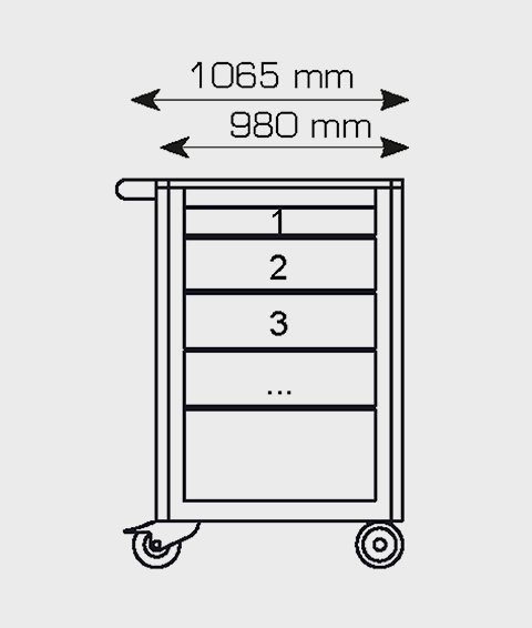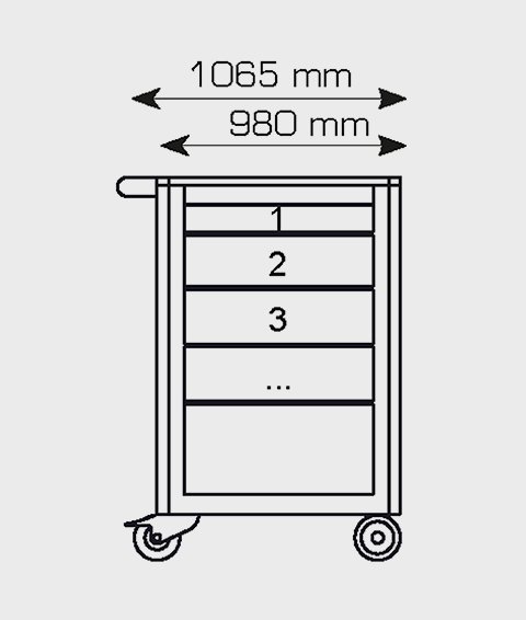 - Abmessungen des Werkzeugwagens: 106,5 x 46,5 x 97 cm.