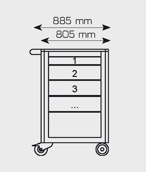 - Abmessungen des Werkzeugwagens: 88,5 x 46,5 x 97 cm.