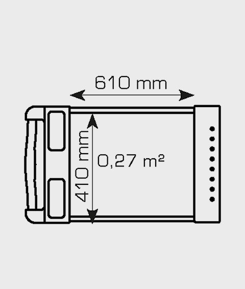 - Abmessungen der Edelstahlschale: 61 x 41 cm.